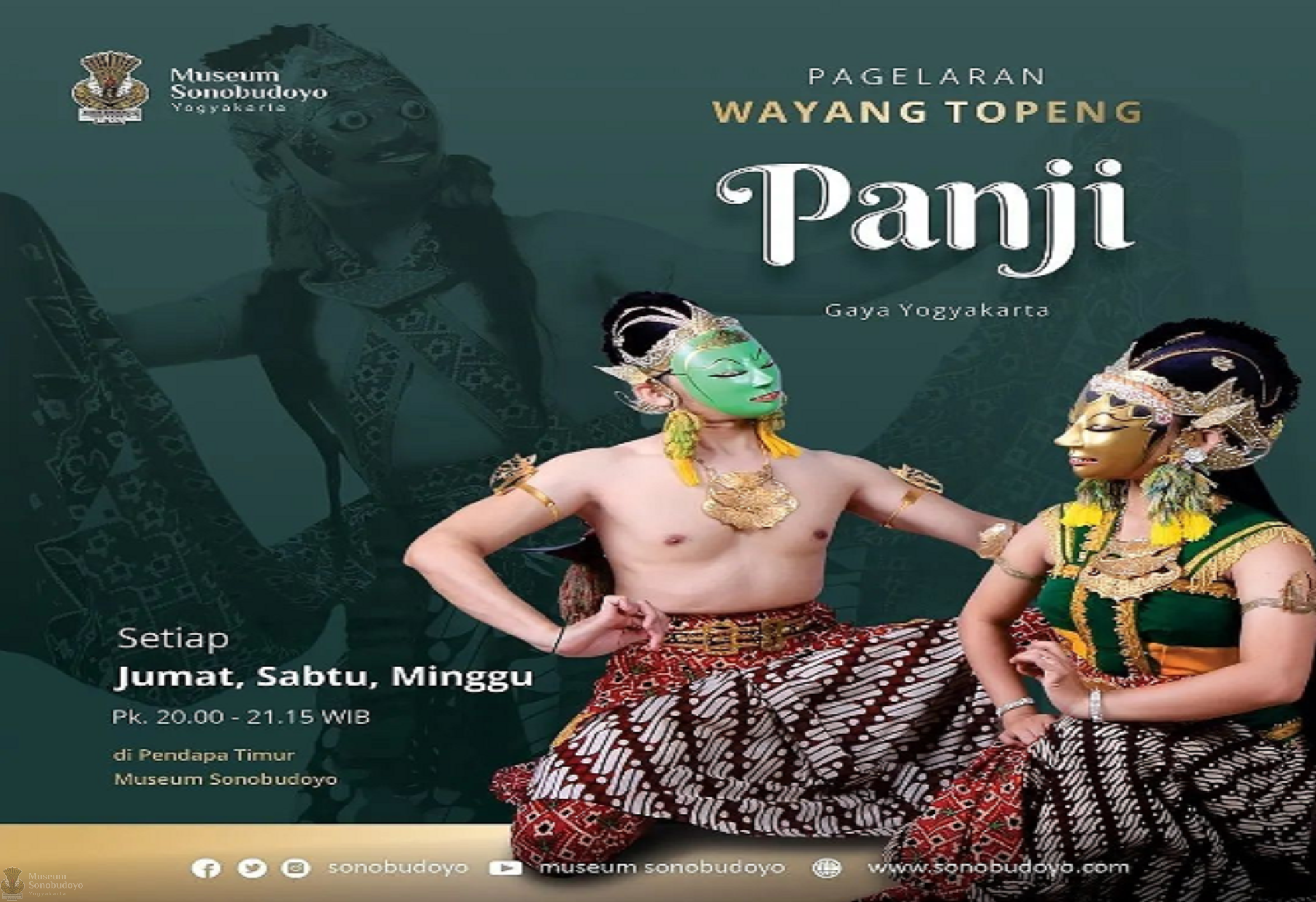 - Pertunjukkan Wayang Topeng Panji setiap hari Jumat, Sabtu dan Minggu pukul 20.00 - 21.15 WIB